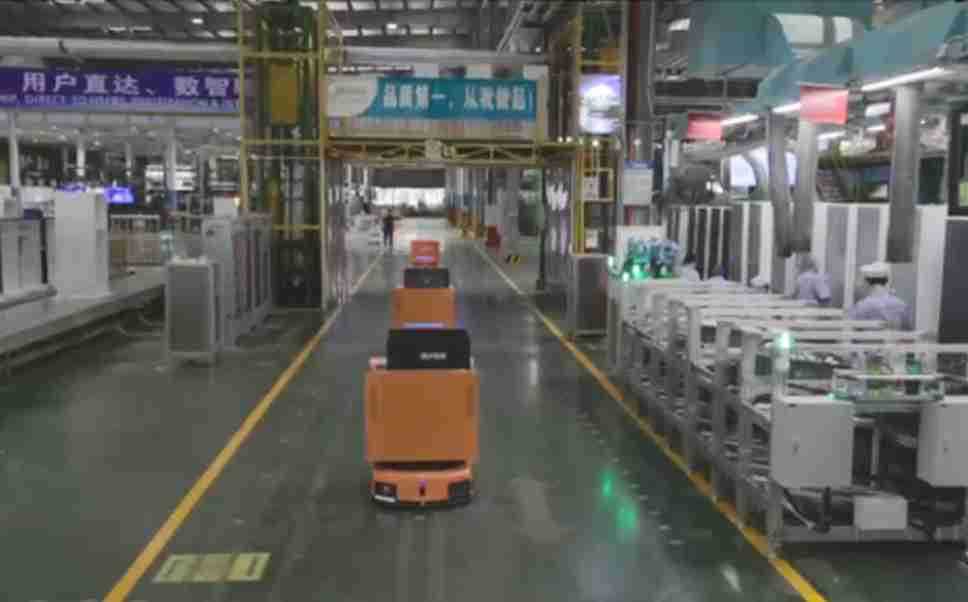 为车载冰箱物流配送打造的智能解决方案,,包含产中物流通过潜伏举升AMR搬运至线边,,,产后成品物流智能仓储,,流程包含产中物流智能齐套入库,,,线边安灯叫料AMR智能配送至线边,,,成品入库、、、、出库,,,通过无人堆高车机器人,,,,智能仓储管理替代人工作业管理,,实现更高存储、、、更高效率、、更具柔性化的解决方案。。。。